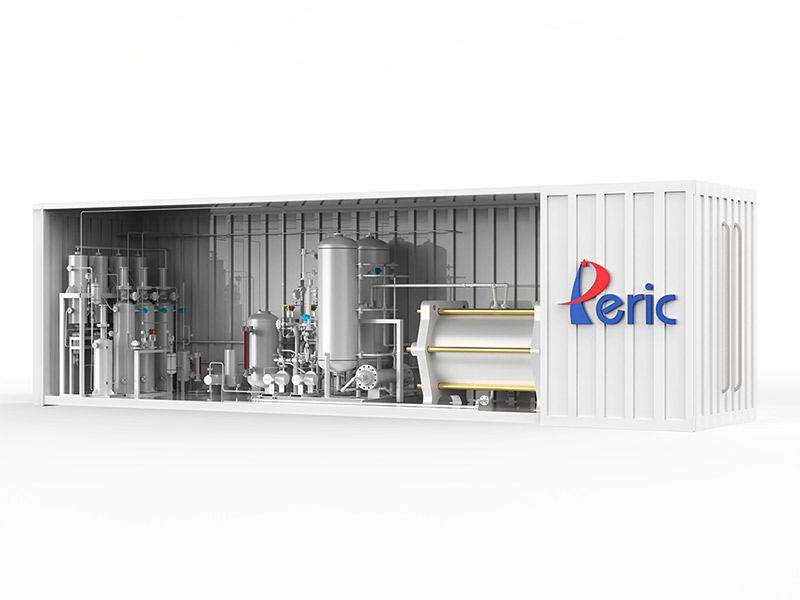 As one of the best-selling products, our CDQ series skid-mounted H2 generator’s production capacity can range from 20Nm³/h to 2000Nm³/h with single electrolyzer. All the piping and cabling within the skid-mounted structure are carefully polished. The electrolyzer adopts a bipolar pressure filter structure. The seal gasket researched and developed by PERIC ensures no leakage from the electrolyzer whether in hot or cold conditions. The gas-lye treater is skid-mounted type with simple process flow, easy to install, operate and maintain. The H2 generator is automatically controlled through PLC programming, with high reliability and remote control. Operator-friendly HMI makes the operation safe and convenient. Initial H2 purity>99.8%; Initial O2 purity >99.2%; DC power consumption ≤ 4.3 KWh/m³H2