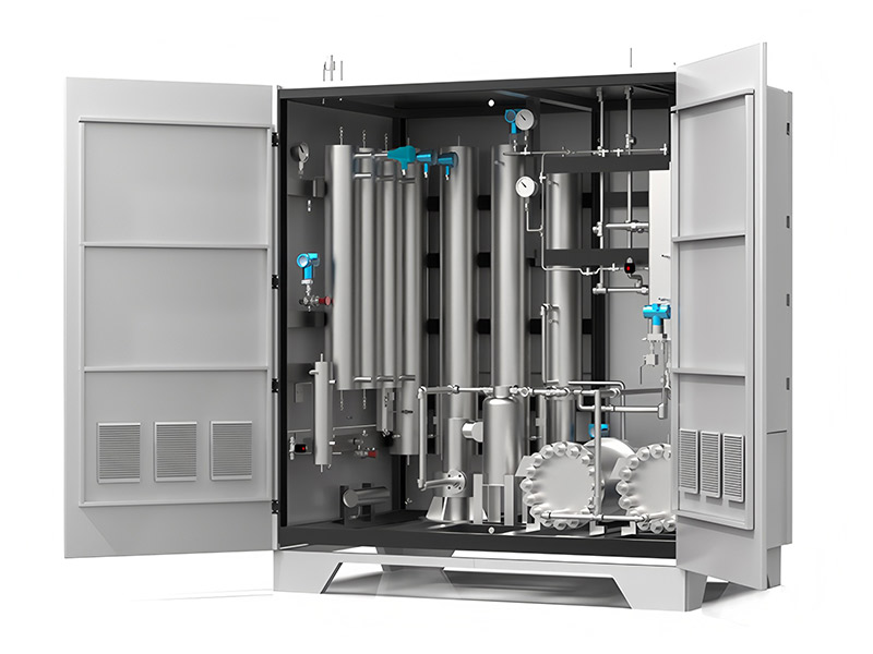 纯水型电解制氢装置是我所近年来自主研发的新型绿色水电解制氢系统,单台设备产氢量为0.01~300Nm3/h,可适用于可再生能源发电制氢、氢能基础设施加氢站制供氢、天然气掺氢等技术,在交通领域、电网储能、智能微电网以及军用领域得到广泛应用。