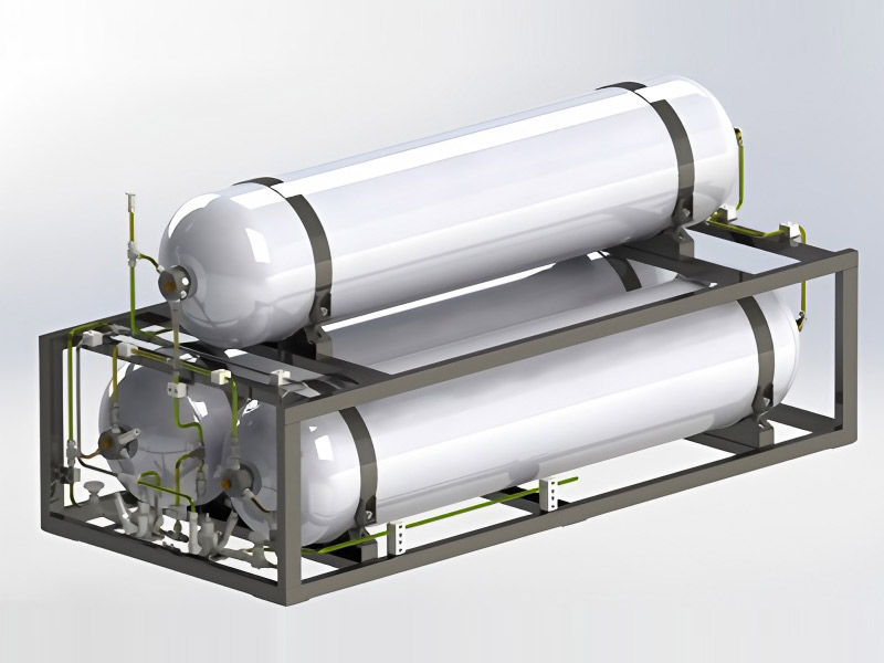 储氢模块包括高压氢气瓶、瓶口组合阀、PRD(压力释放装置,一旦工作不可恢复),以及必要的连接管路等,主要功用是将加氢站注入的氢气安全地储存在高压氢气液中。